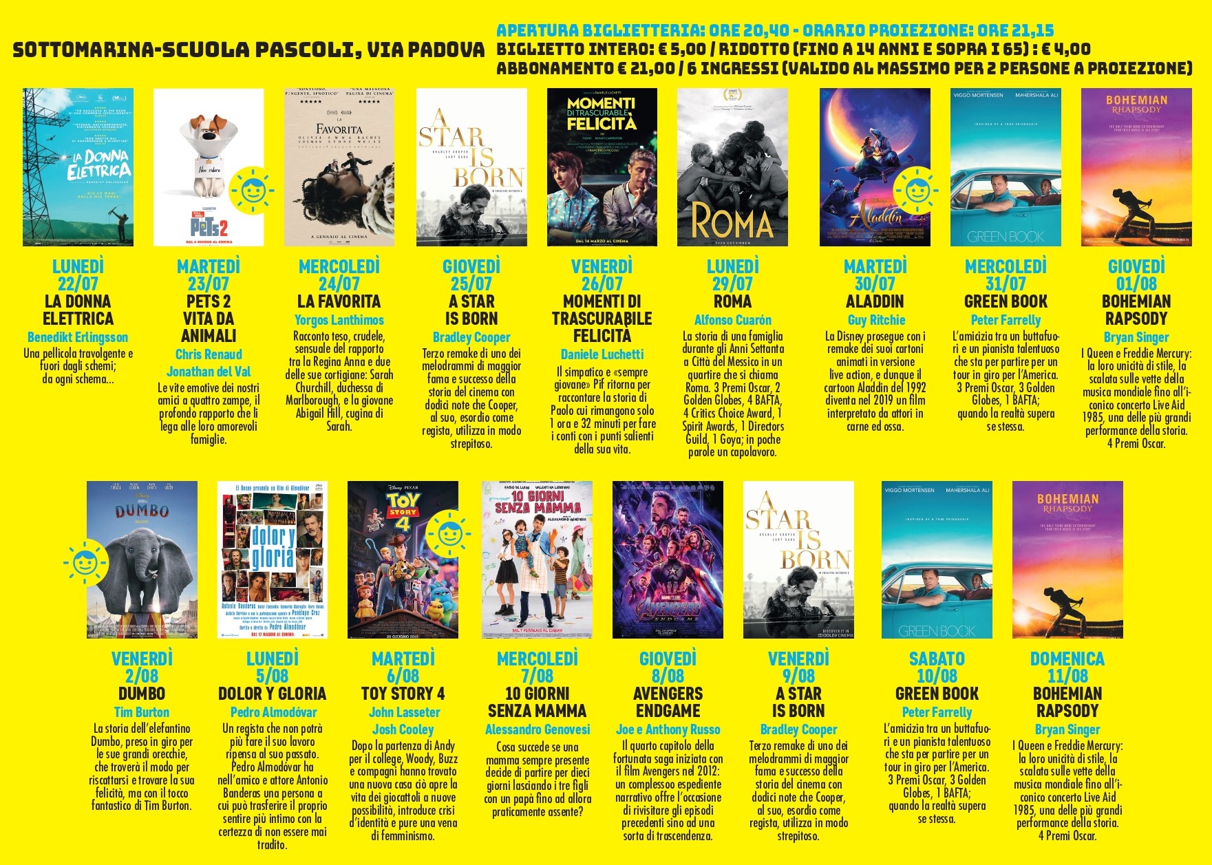 Torna anche quest’anno l’appuntamento con il grande cinema sotto le stelle a Sottomarina e Isola Verde. Due infatti i contesti e le programmazioni: ad Isola Verde le proiezioni di “Cinema al Mare” partiranno dal 5 luglio, tutti i venerdì, fino al 23 agosto con ingresso gratuito, mentre a Sottomarina il grande schermo di “Cinema d’A(mare), posizionato nel giardino della scuola Media Pascoli, sarà il centro della programmazione dal 22 luglio all’11 agosto. Tanti i film in rassegna da “Oceania” ad “Apollo 13” e dal recentissimo “Momenti di trascurabile felicità” al campione di incassi “Green Book”. L’iniziativa è promossa in sinergia dai settori della cultura e del turismo, realizzata a cura de “L’image” in collaborazione con “Daniele & Trevisan” per le apparecchiature.