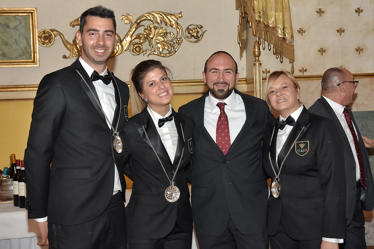 Il salone d’onore del Pedrocchi, lo storico caffè detto “senza porte” perché nell’Ottocento non chiudeva mai, è stata la sede della serata di gala e della consegna ai neosommelier FISAR Padova del “tastevin”, il simbolo universale della sommellerie. Oltre cento tra soci e simpatizzanti, corsisti e neosommelier, hanno affollato il 7 giugno scorso lo stupendo salone nobile dedicato a Giacomo Rossini e la terrazza che affaccia sul “listòn” padovano, vivendo una serata indimenticabile in un luogo che da quasi duecento anni è simbolo di buon gusto ed eleganza. E buon gusto ed eleganza è ciò che un bravo sommelier sa trasmettere nella scelta del vino adatto a ogni occasione, nell’abbinamento con un cibo prezioso, nel modo migliore per servirlo e degustarlo. Ecco perché al Pedrocchi ci siamo sentiti a casa. Quale luogo migliore per un’occasione così speciale?