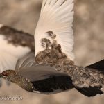 La pernice bianca, per non lasciare impronte sulla neve che potrebbero rivelare la sua presenza, arriva in volo al riparo scelto per proteggersi dal freddo