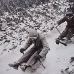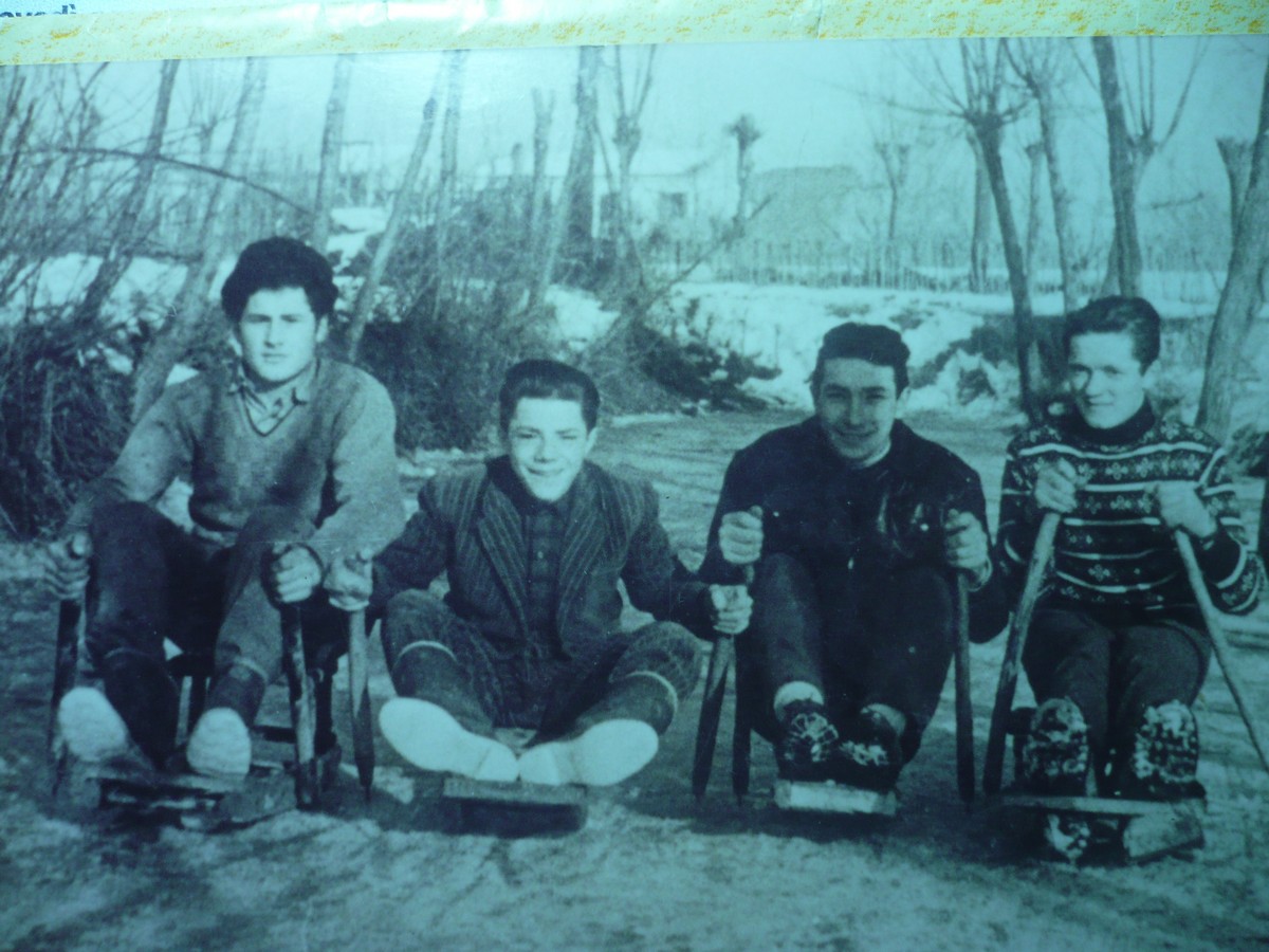 Gli Inverni erano veramente freddi, in casa l’unica stanza riscaldata dal camino era la cucina. Io dormivo in una stanza in tramontana e mi portavo un bicchiere d’acqua sul “comodino”, nel caso avessi avuto sete. Un mattino, con mio grande stupore, nel bicchiere ho trovato il ghiaccio! Anche l’acqua dei fossi si ghiacciava per spessori di 15-20 centimetri, al punto che si poteva camminarci sopra. Gli operai dei comuni andavano a prendere questo ghiaccio, formando dei cubi con appositi picconi, per portarlo nelle ghiacciaie comunali, dove veniva conservato per l’estate e usato in caso di male ai denti o per curare febbri e infiammazioni o per conservare cibi, prima dell’invenzione del ghiaccio artificiale e dei frigoriferi. Nello stesso modo in cui ci si divertiva con la neve, anche nei i fossi ghiacciati si trovava la possibilità di svagarsi, in quei tempi poveri ma ricchi di fantasia. In un punto particolarmente basso del mio paese, c’era un pezzo di terra con una grande fossa sempre piena d’acqua e alberi di pioppo lungo le rive. La chiamavamo “la peschiera” che d’inverno si trasformava nello Stadio del Ghiaccio.