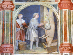 Il mese di dicembre nel ciclo di affreschi di Palazzo della Ragione di Padova. Una strepitosa “macchina del tempo”, il ciclo, il più esteso al mondo, con 333 riquadri che rappresentano gli elementi caratteristici del mese: il segno zodiacale, i simboli astrologici dei pianeti, i dodici apostoli associati ai dodici mesi, i lavori agricoli del mese