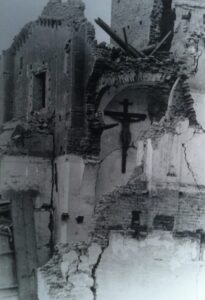 I ruderi della chiesa di Masi, dopo i bombardamenti alleati del 1945