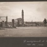 I ruderi del campanile dopo i bombardamenti del 1945